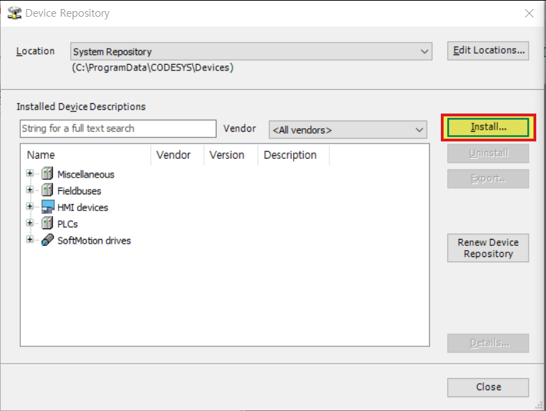 Codesys에 등록되지 않은 EtherCAT 장치는 xml 파일을 설치, 추가해야 사용할 수 있습니다.