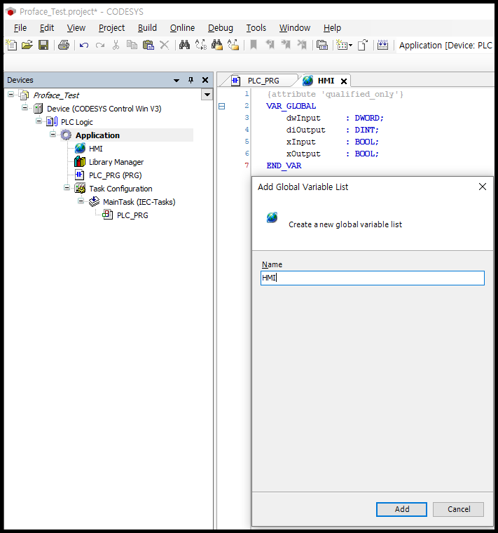 위와 같이 Global 변수를 생성하여 HMI용 변수만 별도로 관리하면 편리합니다.