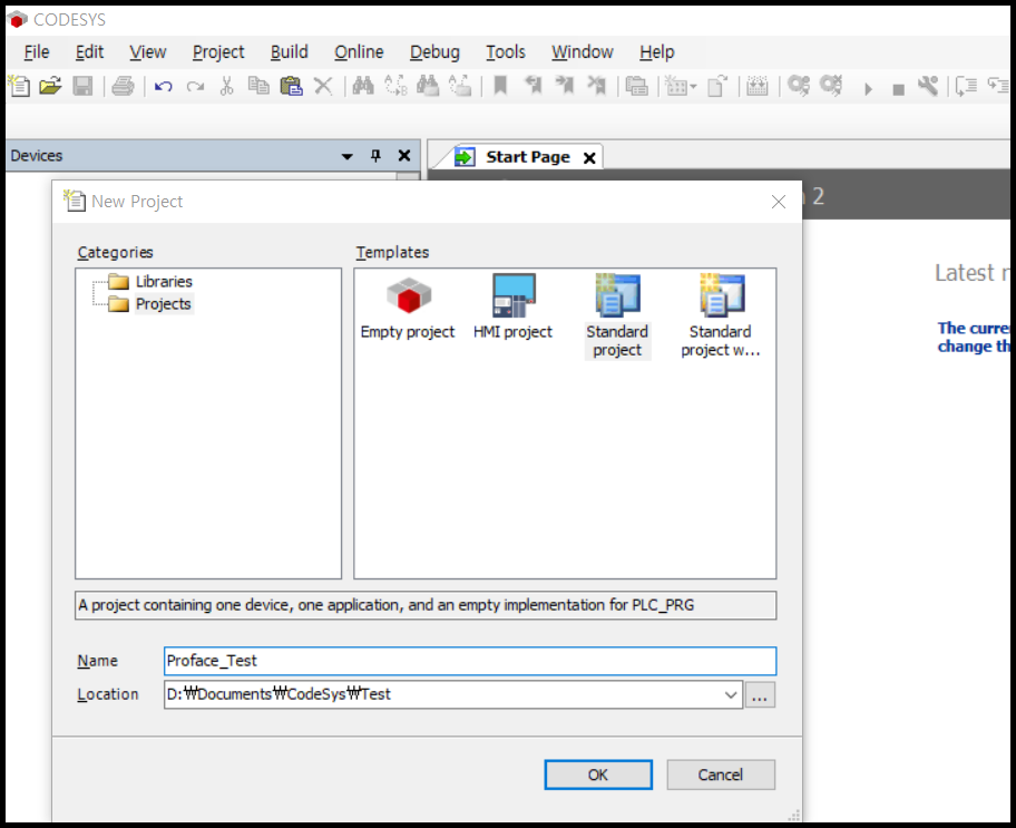 Codesys 새로운 프로젝트를 만듭니다.