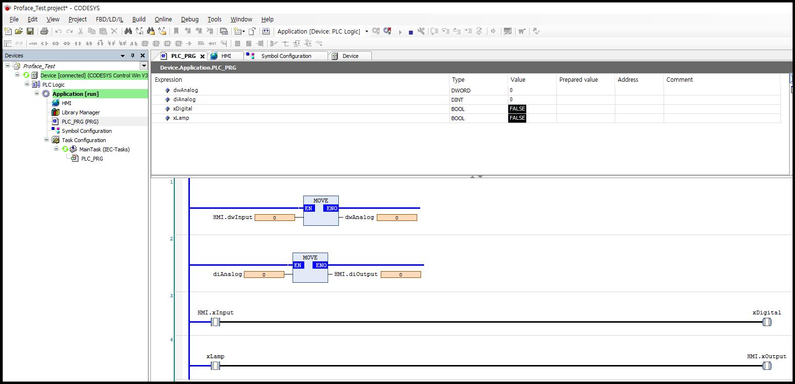 위와 같이 Global 변수를 생성하여 HMI용 변수만 별도로 관리하면 편리합니다.