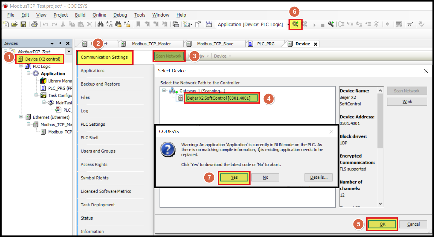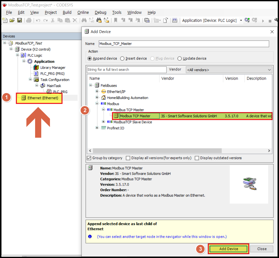 [Device] 항목에서 [Modbus_TCP_Master] 를 더블클릭합니다.