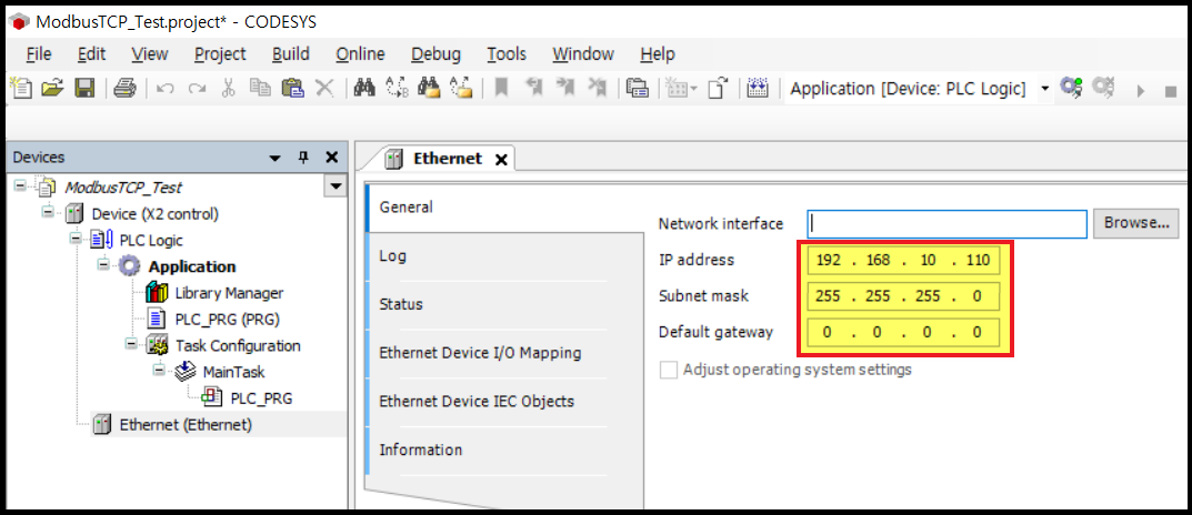 여기서는 IP 주소를 변경해야 합니다. 내 Codesys controller에 맞게 IP를 설정합니다.