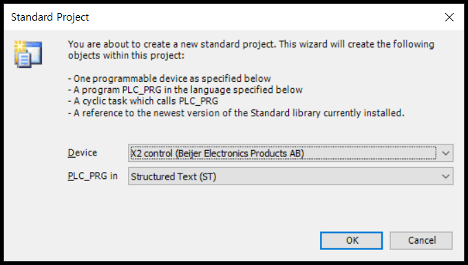 [PLC_PRG in] 항목은 ST (Structured Text)로 선택해 보았습니다.