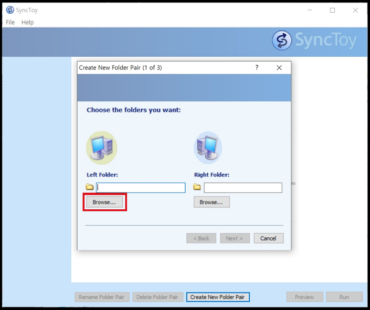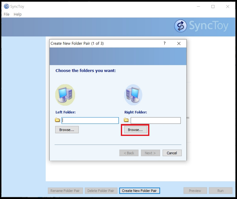 SyncToy는 두 폴더를 서로 동기화 또는 백업하는 기능을 하는 소프트웨어 입니다.