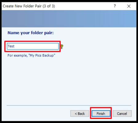 동기화할 폴더 이름을 입력하고 [Finish] 를 클릭합니다.