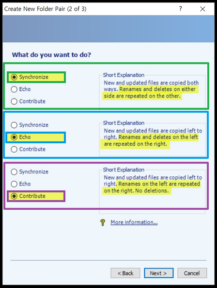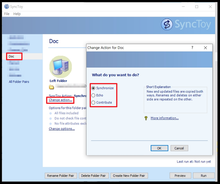 저는 폴더의 중요도에 따라 [Synchronize] 또는 [Echo] 로 설정하여 데이터를 백업합니다.