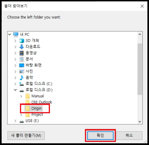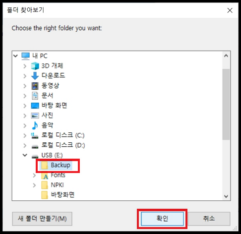이번에도 역시 미리 만들어놓은 폴더를 선택하였습니다.