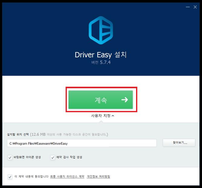 라이센스에 동의하고 [계속] 버튼을 클릭합니다.
