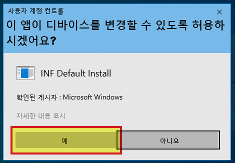 설치 여부를 묻는 창이 나타납니다. [예]를 클릭하면 설치가 됩니다.
