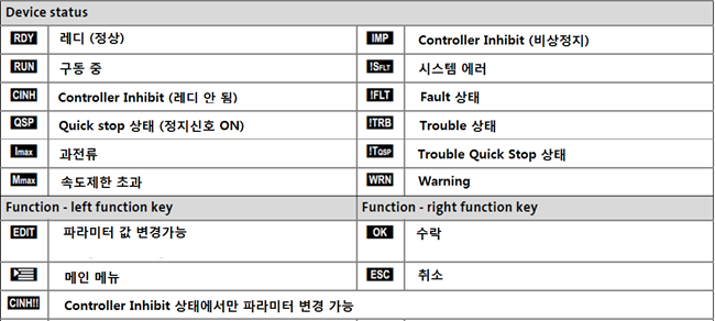 - 기능 : 제품 상태표시, 파라미터 변경, 에러기록 확인, 파라미터 저장 가능