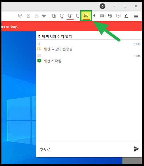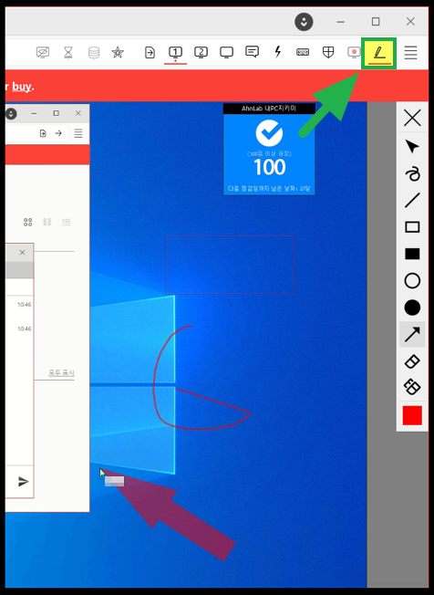 상대방 PC 화면에 펜으로 표시를 할 수 있습니다. 사각형, 원, 화살표를 그릴 수 있습니다.