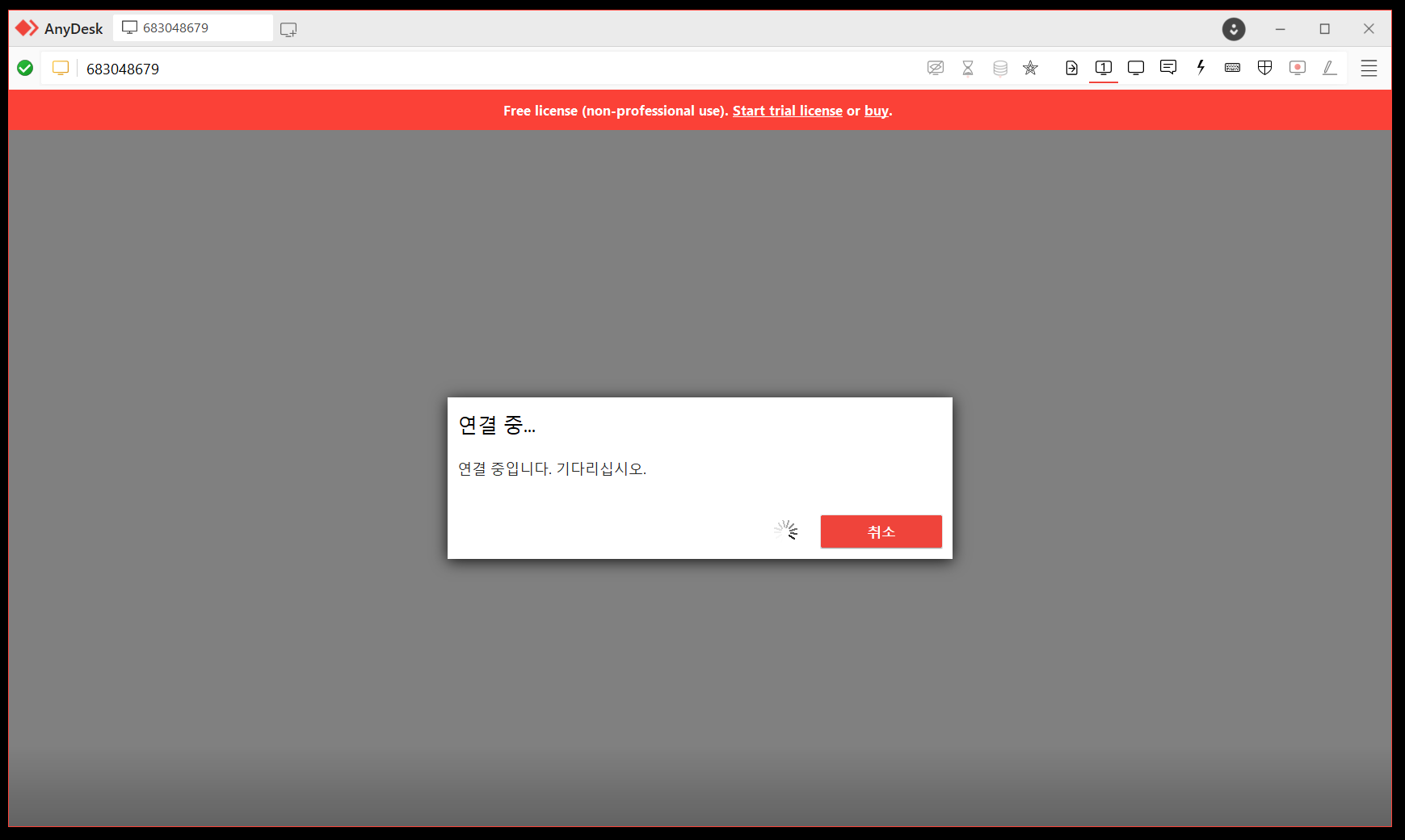 "연결 중" 이라는 안내가 나옵니다. 이 때, 상대방 PC에서는 접속 허용을 묻는 창이 나타납니다.