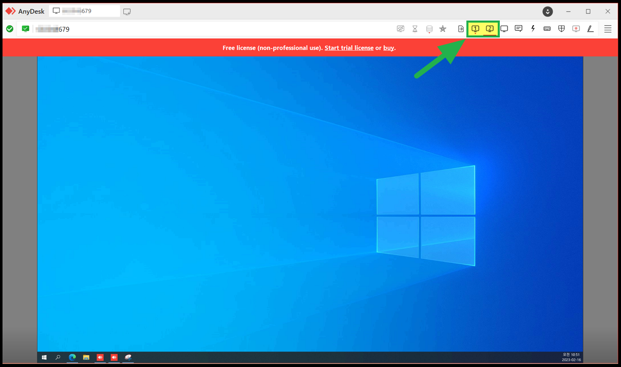 모니터 2번을 선택하자, 상대방 PC의 보조 모니터 화면이 나타났습니다.