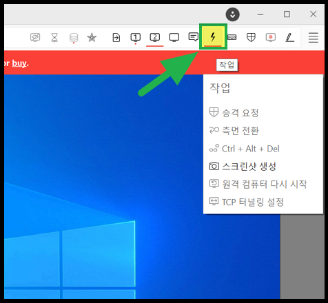 [스크린샷 생성] 은 상대방 PC 화면을 캡쳐해 주는 기능입니다.
