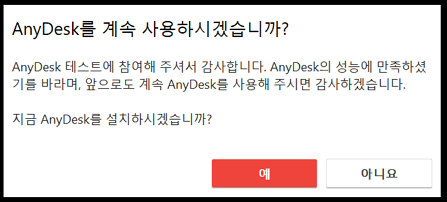 원격접속을 마치기 위해 [종료]를 클릭하자 설치 여부를 묻는 창이 나타납니다.