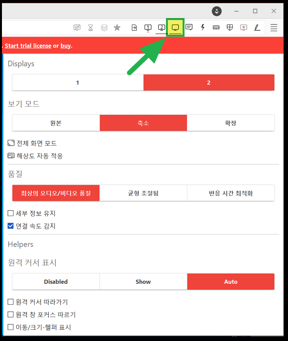 상대방 PC가 다중 모니터를 사용중이라면, 내 PC에 보여지는 모니터를 변경하는 기능입니다.