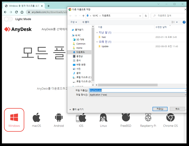 이를 위해, 다른 PC에도 AnyDesk를 동일하게 설치하였습니다.