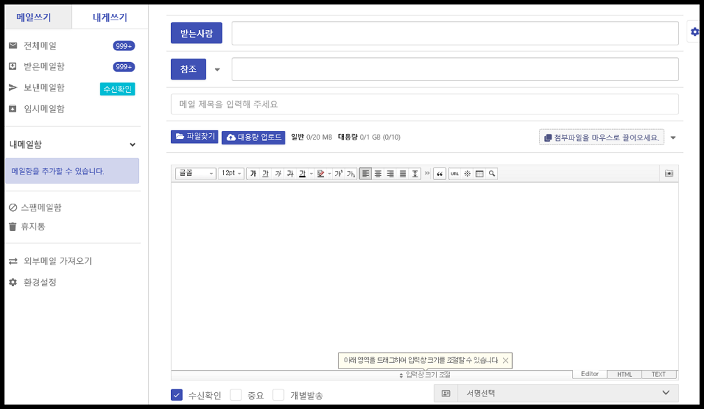 하지만, 후이즈메일의 새 상품에서는 네이버메일과 같은 방법으로 대용량 파일의 첨부가 가능해졌습니다.