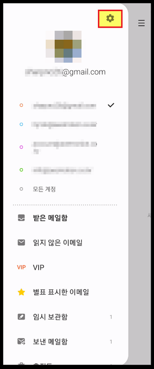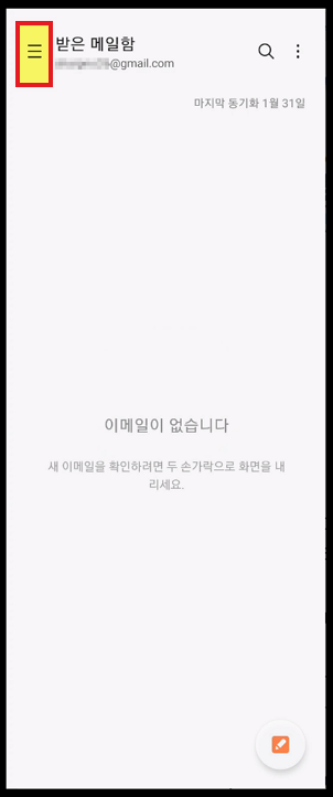좌측 상단의 메뉴표시를 누르면 본인의 메일 계정이 나옵니다.