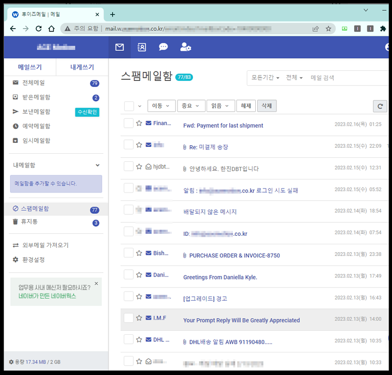 기존에는 스팸메일이 너무 많이 와서 하나하나 신고하고 차단하기 바빴지만,