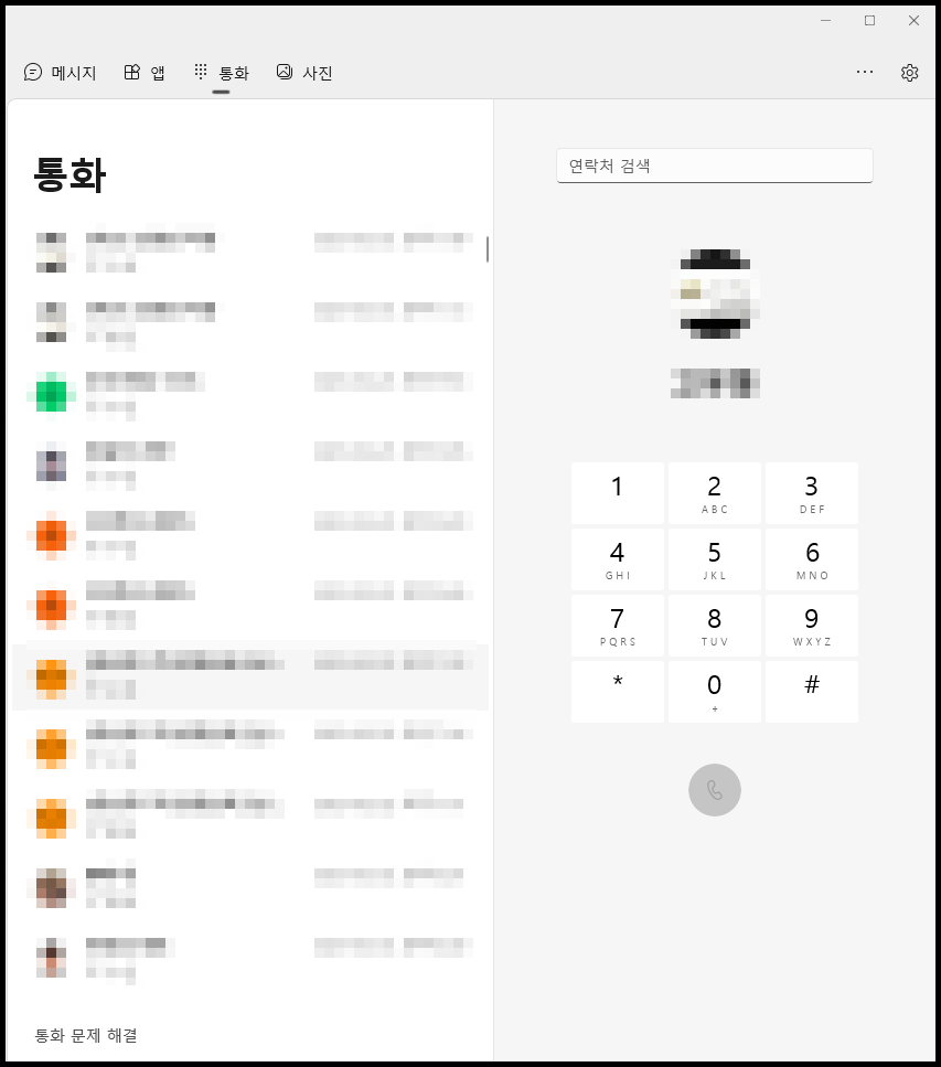 설정이 완료되면, 컴퓨터 앱에서 최근 통화목록을 볼 수 있고, 전화를 걸 수도 있습니다.