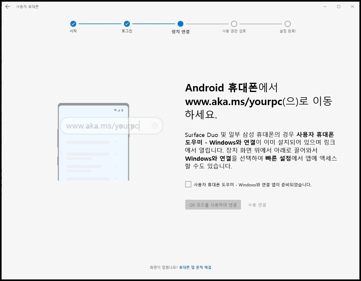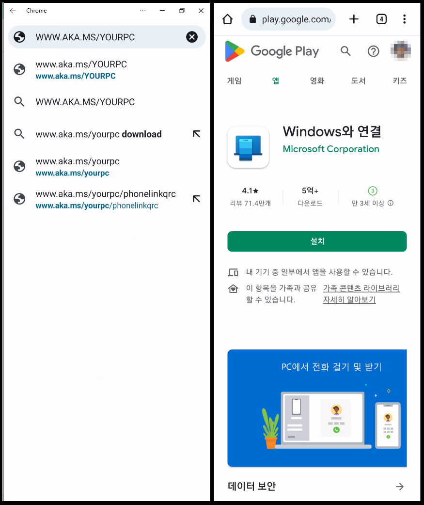 해당 주소로 접속하면, [Windows와 연결] 앱을 설치할 수 있는 화면이 나옵니다.