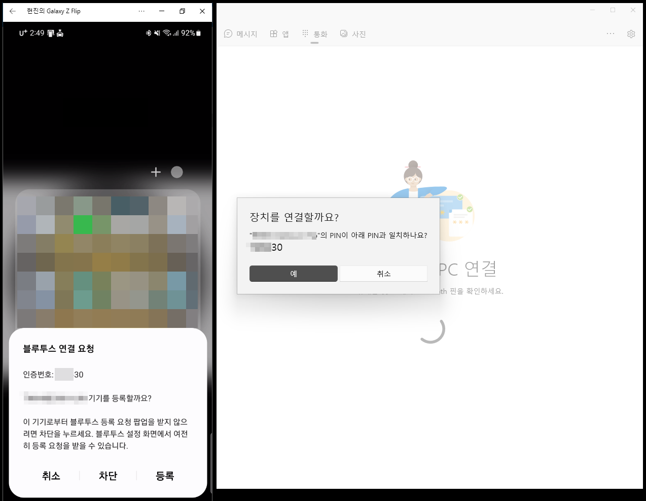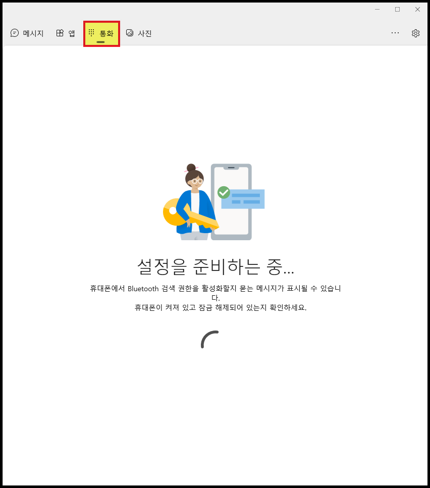 [통화] 기능을 사용하기 위해서는 휴대폰과 컴퓨터 앱에서 권한 설정을 해주어야 합니다.