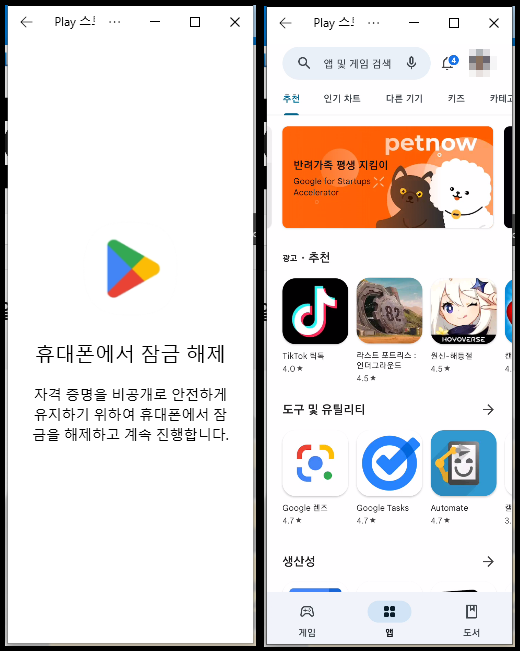 휴대폰 앱을 실행하려면, 휴대폰에서 잠금 해제를 해주어야 합니다.