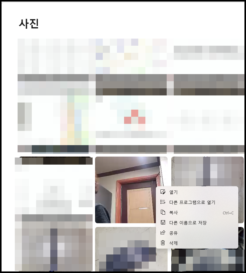 마우스 오른쪽 버튼을 눌러 사진 삭제도 가능합니다.