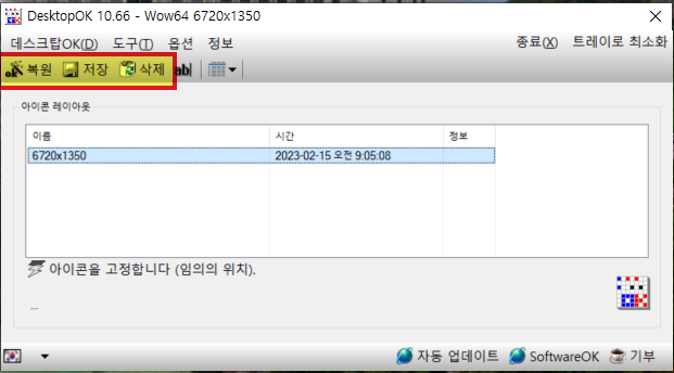 - 복원 : 저장된 바탕화면 아이콘 배치를 복원합니다.