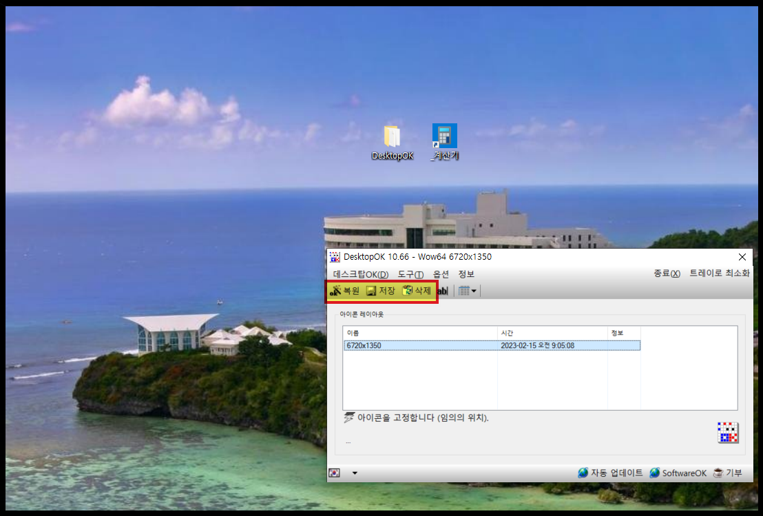 - 복원 : 저장된 바탕화면 아이콘 배치를 복원합니다.