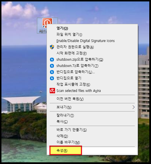 이와 같이, 바탕화면에 [시스템종료] 바로가기 아이콘이 만들어 졌습니다.