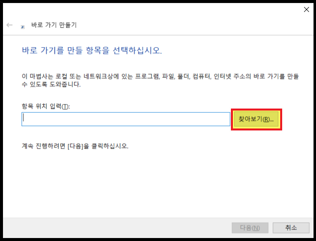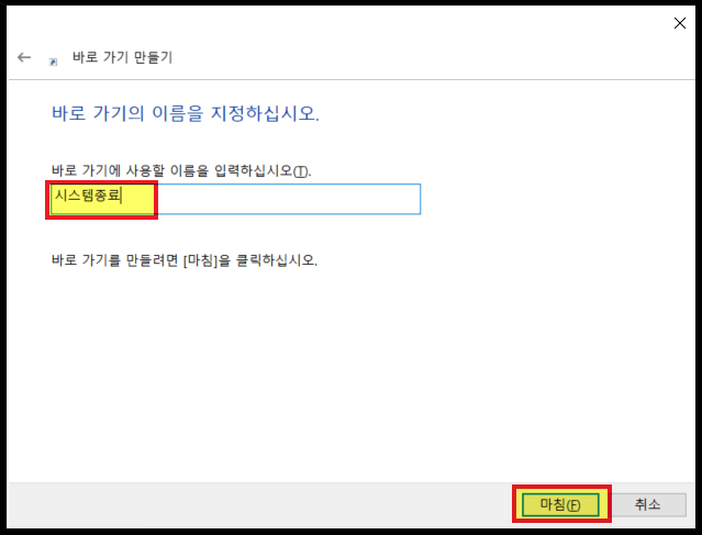 바로가기의 이름을 입력하고 [마침]을 클릭합니다.