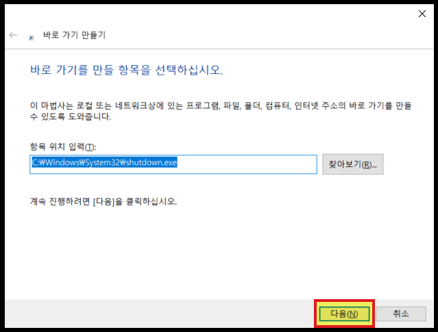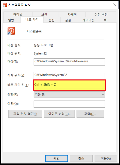 마우스를 사용하지 않고 윈도우를 좀 더 빠르게 종료하기 위해서는 단축키를 설정하면 됩니다.