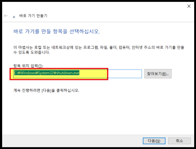 [C 드라이브] → [windows] 폴더 → [System32] 폴더 → [shutdown.exe]